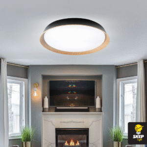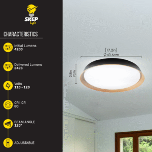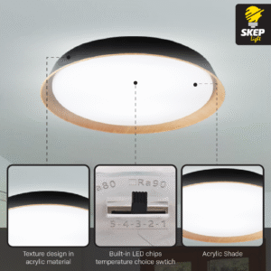 PANEL LED FLUSH MOUNT CEILING LIGHT FIXTURE 42 W – BLACK + WOOD