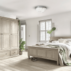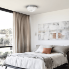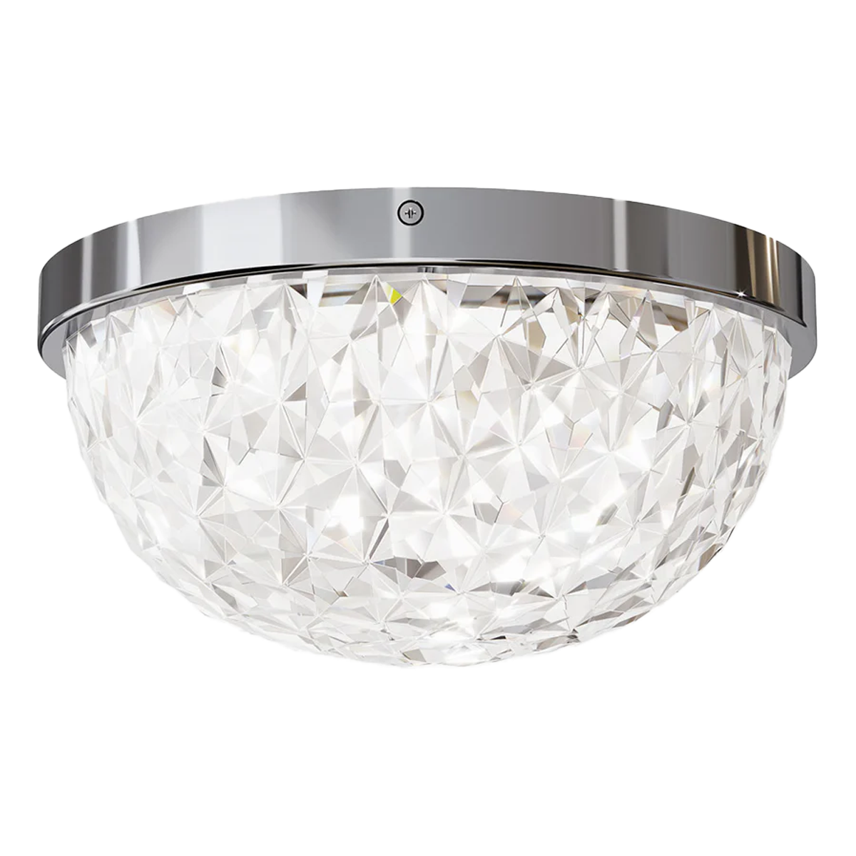 Aitana Flush LED – Ceiling Light. This flush-mounted fixture is the epitome of contemporary elegance. Made of chrome steel and adorned with faceted crystals that capture and disperse light, it’s perfect for adding a touch of glamour to bedrooms, living rooms, or hallways. Its modern chandelier-style design offers sophistication without taking up vertical space. Integrated LED technology: 15W, 1500 lumens, dimmable (3CCT). Made of steel. Dimensions: 11” diameter x 5-1/2” heigh