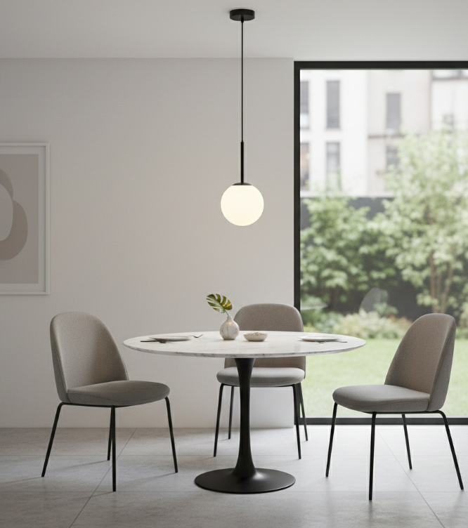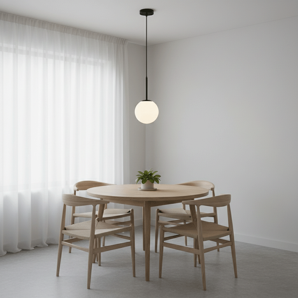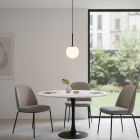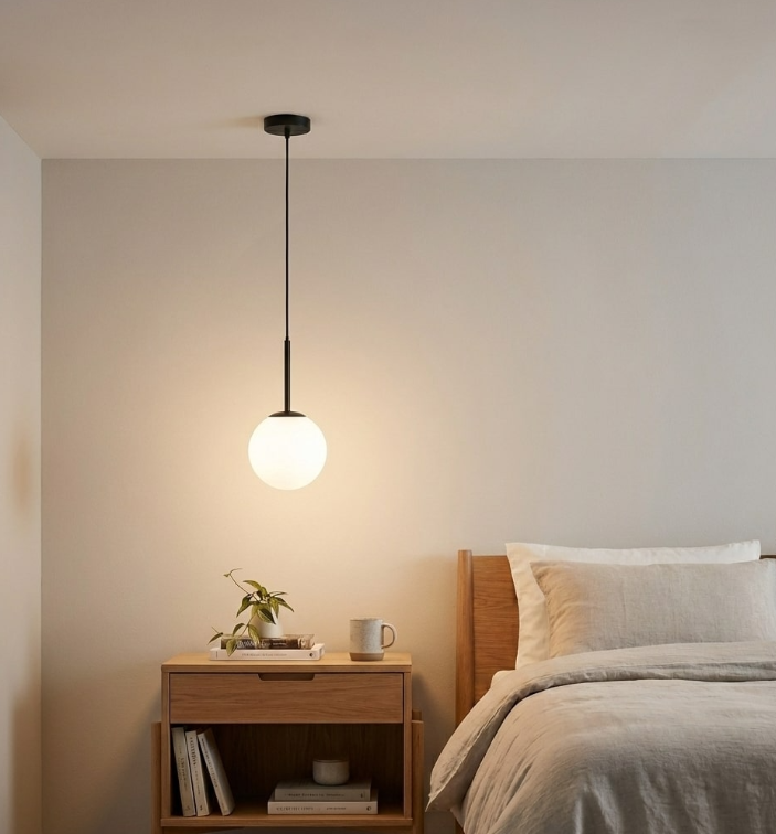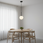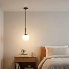 ALICE Pendant Lamp with 1 Light – Ø200×1200 mm.A minimalist and timeless design combining a white opal glass globe with a slim black metal rod, forming a subtle and refined silhouette. Designed for a single E26 bulb, this pendant is ideal for hallways, intimate corners, or reading nooks, offering warmth and style with elegant simplicity.