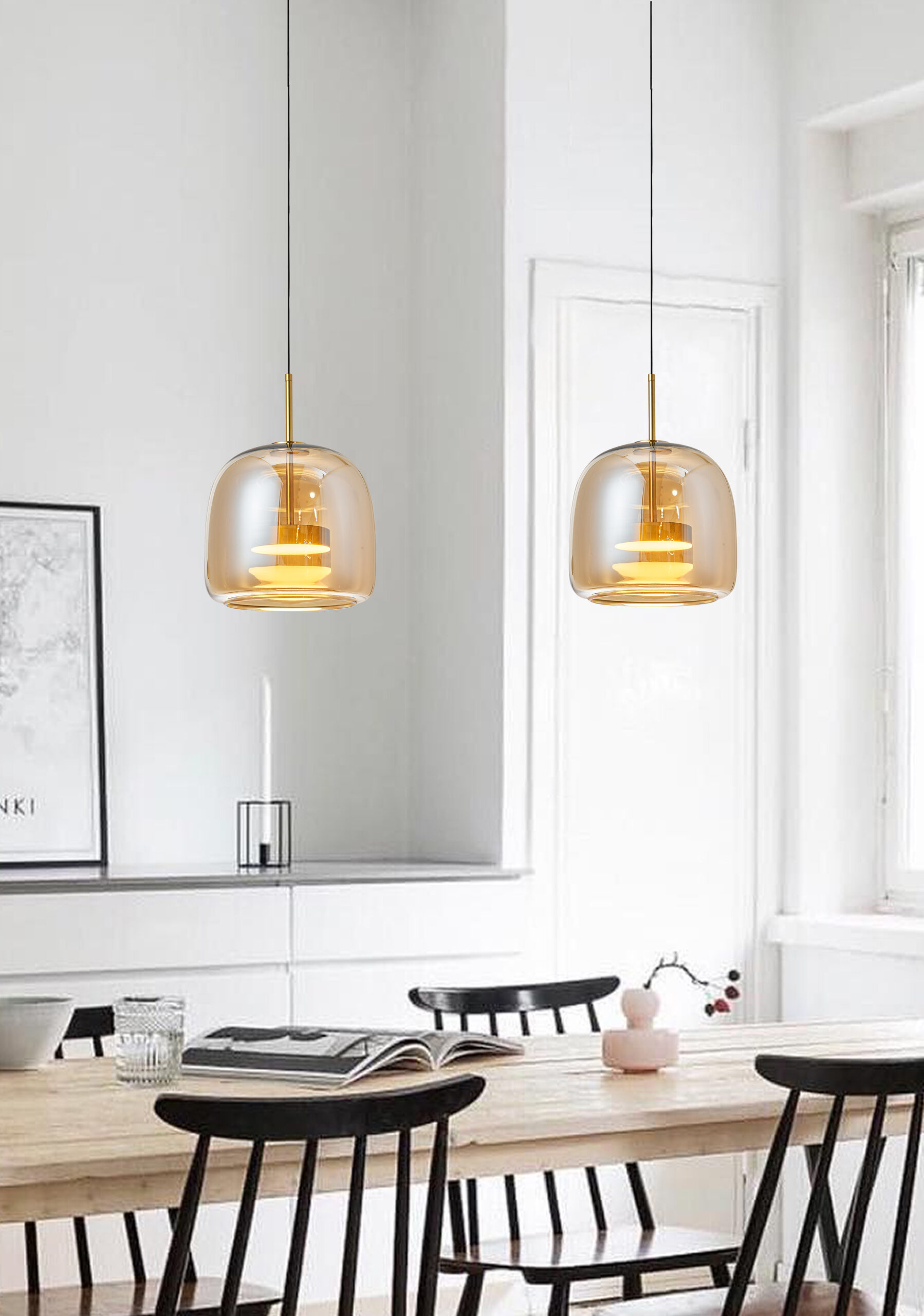 AURA Pendant LED Lamp – Gold (260×240 mm, 12W)Compact yet eye-catching, this AURA version features a rounded shape with caramel-tinted gold glass. With 12W LED power, 5-step CCT adjustment (2700K–5000K), and dimmable function, it’s ideal for elegant spaces that demand both style and efficiency. A decorative piece that brings refinement without occupying much space.