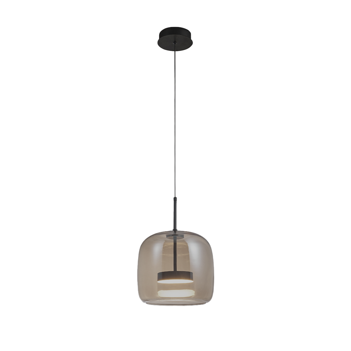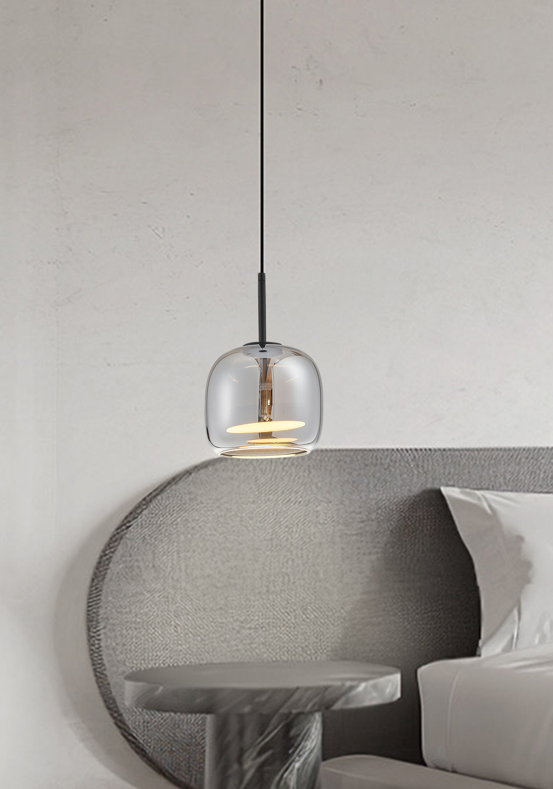 AURA Pendant LED Lamp – Grey/Black (260×240 mm, 12W)This compact version of the AURA series offers a sleek modern style with a smoked grey glass diffuser that softens the light. With 12W of LED power, 5-step color temperature control (CCT 2700K–5000K), and dimming capability, it fits perfectly in hallways, reading corners, or kitchens, blending decorative appeal with functionality.