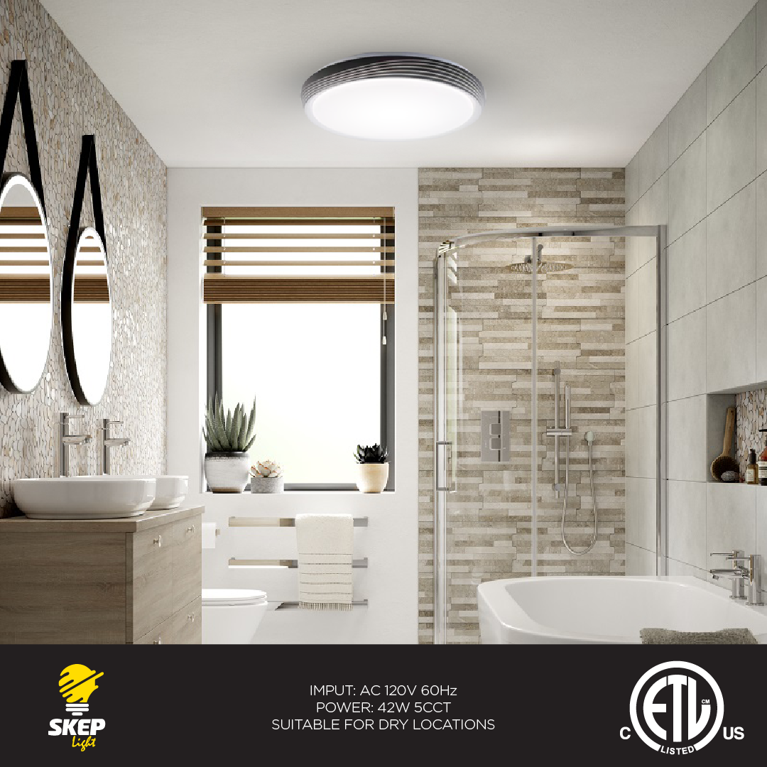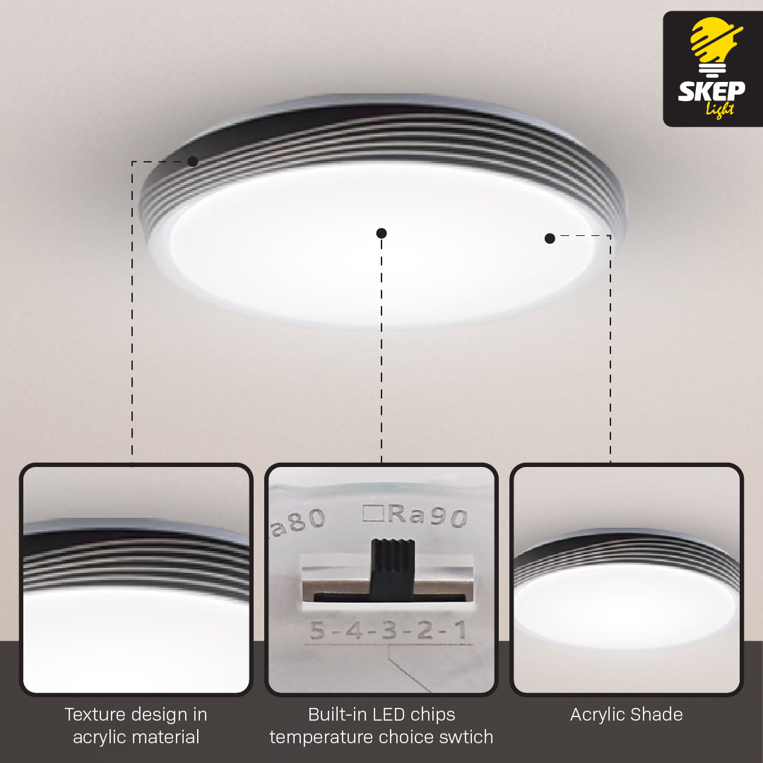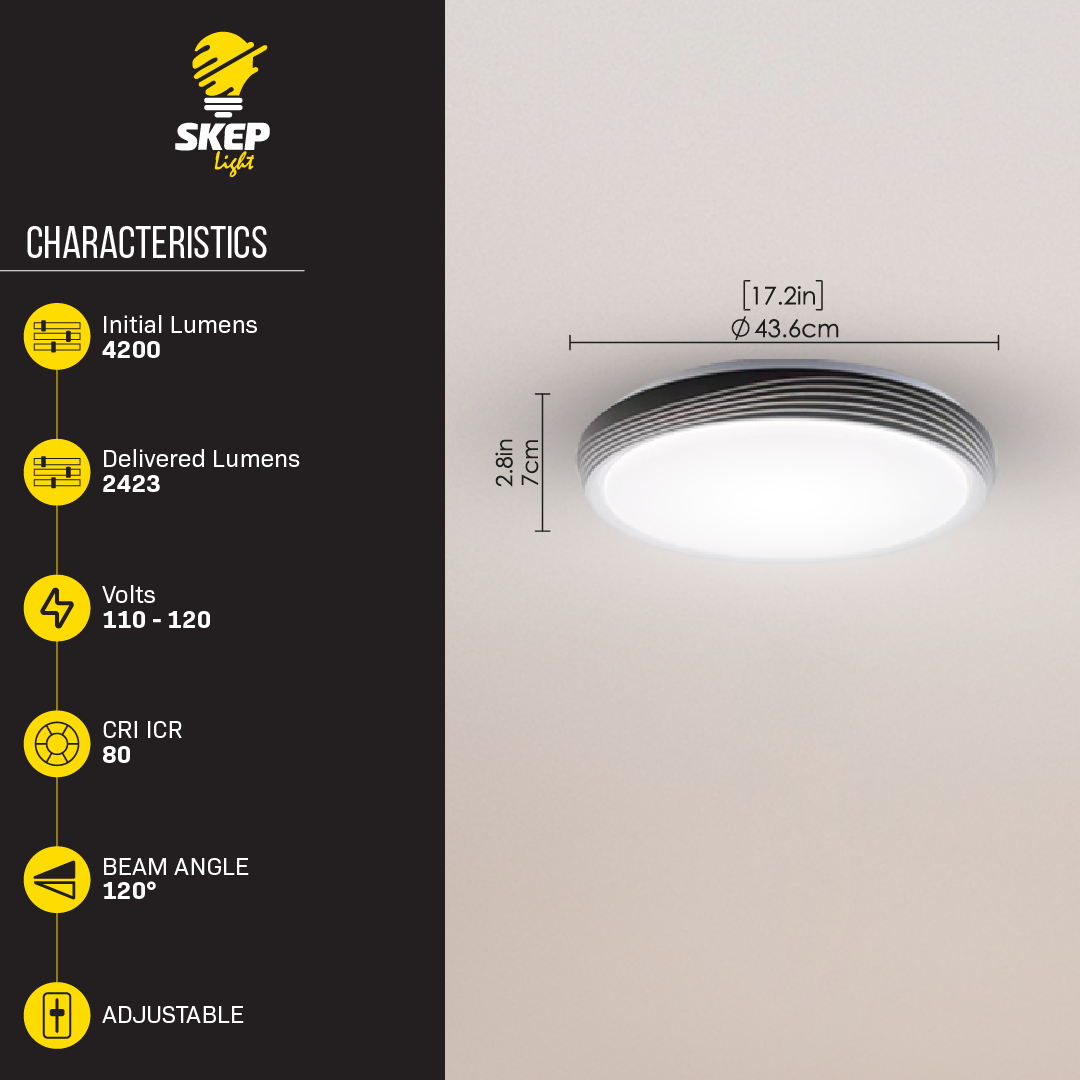 LED FLUSH MOUNT CEILING PANEL 42W – BLACK WITH TRANSPARENT LINES. Featuring a sleek matte black design with stylish transparent lines, this 42W LED panel delivers adjustable lighting (2700K–5000K) to suit any environment. Its slim 2.8″ profile makes it perfect for low ceilings, while the opal diffuser ensures soft, uniform, and glare-free illumination. Crafted from high-quality materials, it’s an ideal choice for modern spaces seeking efficiency, style, and versatility.