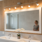 Flashes Wall Lights X6 – Wall Sconce. Featuring six adjustable heads mounted on a brushed metal bar, this fixture offers exceptional light coverage. Ideal for studios, long hallways, or feature walls, its robust and versatile design turns any wall into a functional and modern focal point. Power: 110–120V/DC30W, 2100 lumens, dimmable. Steel structure with glass diffusers. Dimensions: 47-1/2” x 5” x 6”.