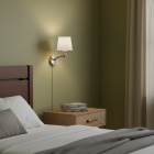 Kelly merges classic charm with modern utility. Its curved steel arm supports a white conical glass shade that softens the glow for cozy lighting. Perfect for headboards, living rooms, or reading corners, this E26-compatible wall lamp adds warmth and a refined touch to any interior with romantic, timeless flair