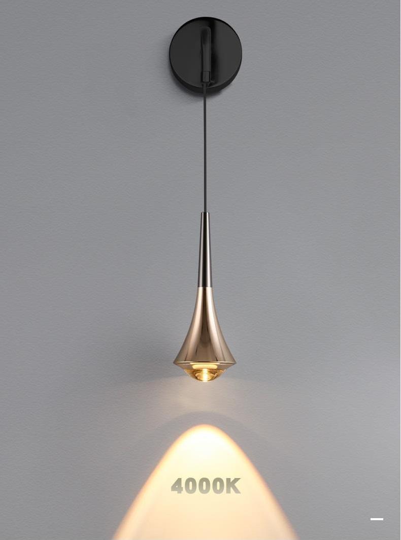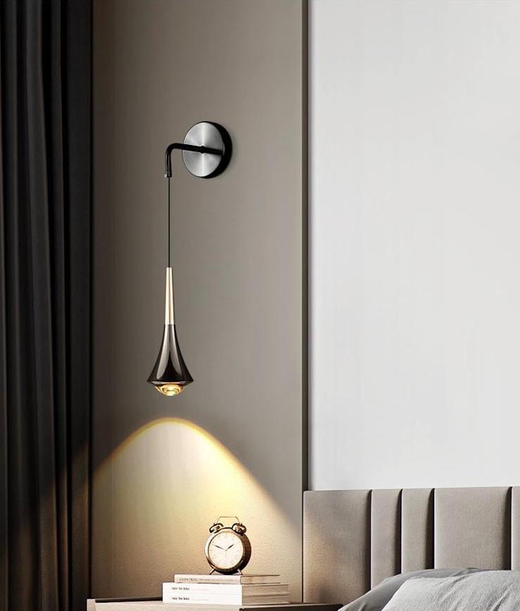 Beacon surprises with an inventive combo: a fixed wall light paired with a suspended pendant from the same base. Made of matte black aluminum with a conical shade, it offers warm LED lighting—ideal for bedside setups, studies, or reading spaces. A functional piece with a unique design that brings modern character to any room.