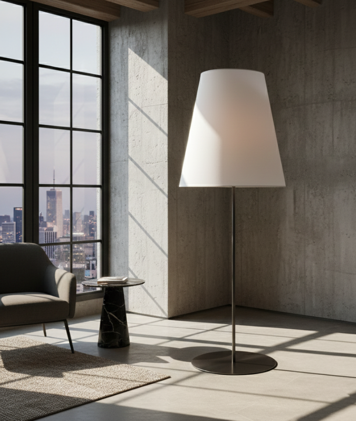 The Hanoi Alta floor lamp offers a sleek and slender structure, ideal for lighting vertical areas such as hallways, corners, or open spaces. Its understated design fits seamlessly into modern homes. Compatible with E26 bulb, includes UL-certified plug cable and integrated switch.