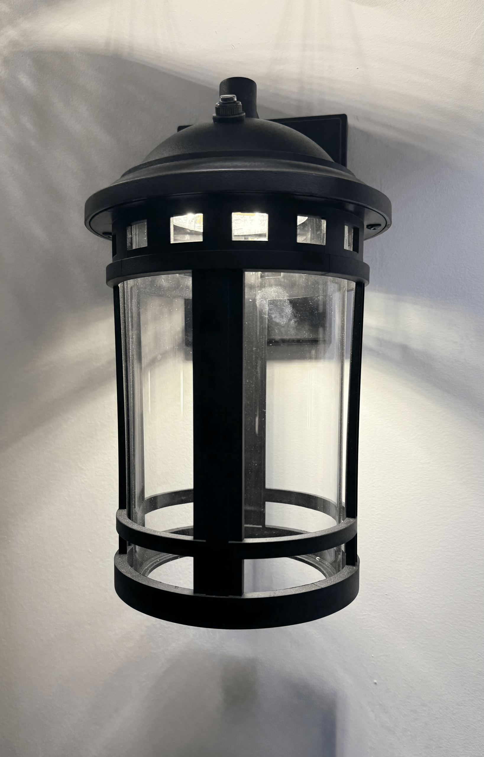 Jacob Outdoor Lantern – LED Outdoor Lantern. Rustic elegance and durability define this outdoor lantern made of black aluminum with transparent panels that allow clear and enveloping light. Perfect for lighting gardens, terraces, or outdoor entrances, its classic design brings distinction and warmth. Integrated LED technology. Power: 110–120V/AC10W, 950 lumens. Material: plastic + glass (3CCT). Dimensions: 12” x 11” x 14”. Includes photocell for automatic on/off.