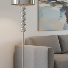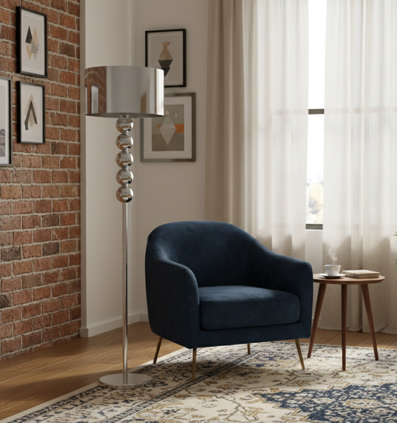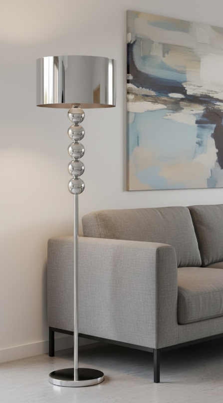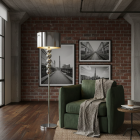 The Kyoto floor lamp combines simplicity and elegance with a streamlined silhouette that brings visual harmony to any space. Its satin-finished metal base holds a light gray fabric shade that diffuses light softly and evenly. Ideal for living rooms, studies, or reading nooks that seek ambient lighting with style. Compatible with E26 bulb, includes UL-certified plug cable and practical on/off switch.