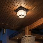 Leo Outdoor Lantern.The Leo fixture is an outdoor ceiling lamp with a square design and black structure, combined with frosted glass that diffuses light evenly. Its sober and functional style is well-suited for porches, terraces, and exterior corridors. Measuring 9-1/4″ long x 9-1/4″ wide x 4-3/4″ high, it uses E26 bulbs of up to 60W (not included). Its weather-resistant finish and compact design ensure durability and harmonious aesthetics for any outdoor space.
