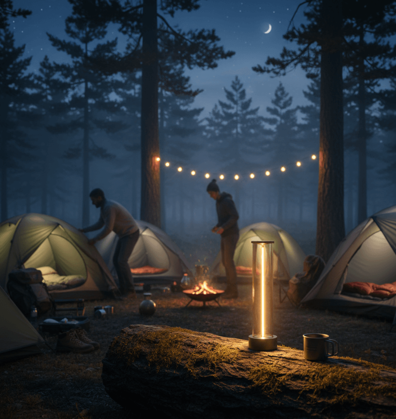 Lunar Ray” combines modern aesthetics with portable lighting. With its minimalist metal frame (7.8×7.8×27 cm) and rechargeable 2W LED light with 3 tones, it’s perfect for cafés, hotels, executive desks, or outdoor dining. Its elegant silhouette blends seamlessly into sophisticated environments.