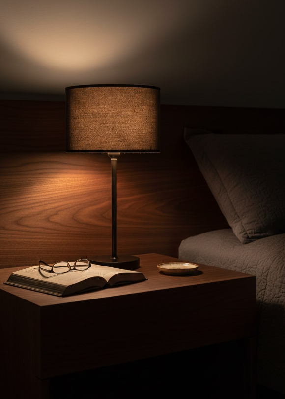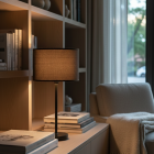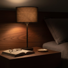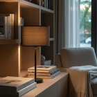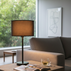 F03 ( Table) – Table Lamp ” Oslo “. The Oslo table lamp stands out with its clean lines and contemporary design. A light coffee-colored cylindrical shade rests on a black metal base, creating a warm contrast—ideal for Scandinavian or minimalist decor. Perfect for bedside tables or modern desks. Compatible with E26 bulb, includes UL-certified plug cable and on/off switch.