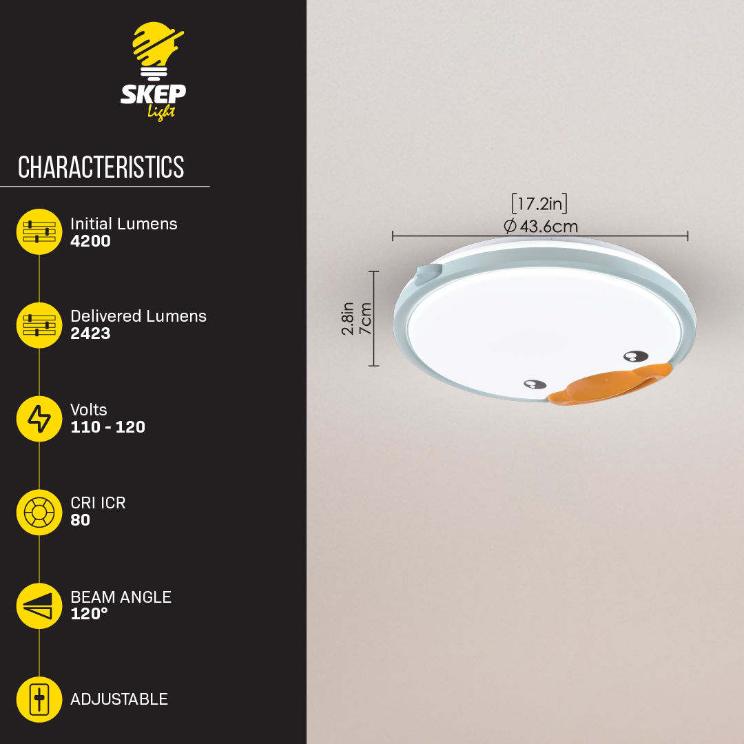 Brighten up any child’s room with this adorable 42W LED ceiling panel featuring a smiling blue duck face. Adjustable from 2700K to 5000K, it provides the right lighting for everything from quiet time to activities. Built from strong, child-friendly materials, this fixture brings warmth, fun, and high functionality to playful interiors.