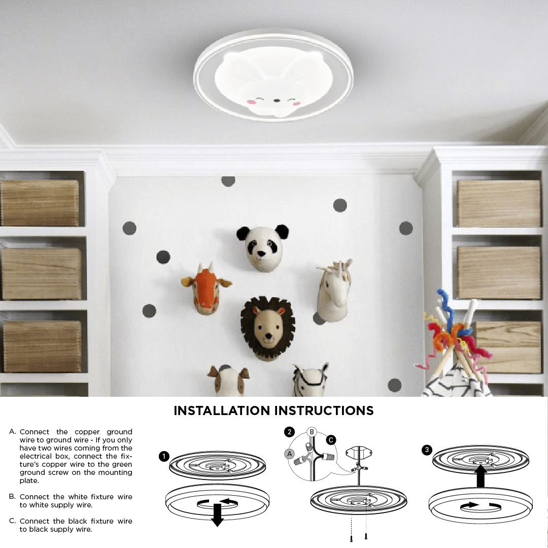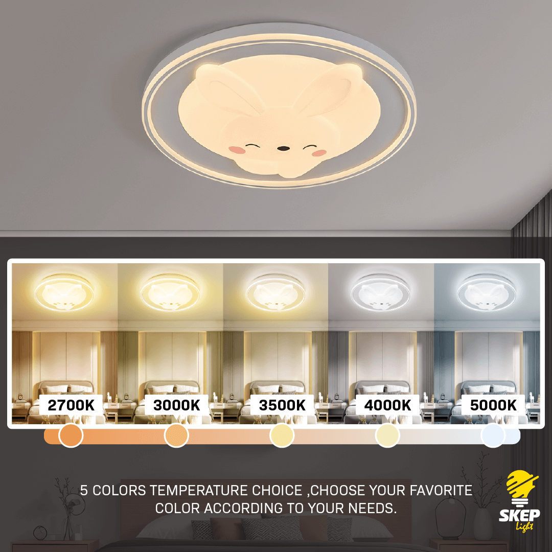 A floral-themed 42W LED panel in a crisp white finish, ideal for children’s bedrooms or nurseries. Featuring a cheerful rabbit, this light supports adjustable color temperatures (2700K–5000K) for every time of day—calming warm light at night, energizing brightness during the day. Built with sturdy, child-safe materials, it turns ceiling lighting into a fun and decorative feature.
