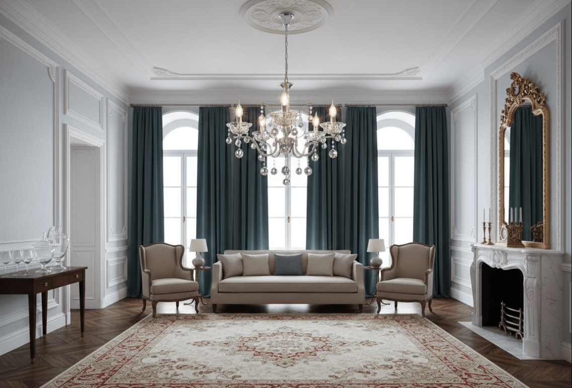 The ROYALE CS3-5 chandelier is a decorative piece that embodies classic luxury with refined elegance. Its structure is crafted from sturdy iron and embellished with high-purity K9 crystal, capturing and reflecting light with spectacular brilliance. With a diameter of 600 mm and a height of 1000 mm, this model holds five E14 bulbs, whose lighting temperature can be adjusted (cool or warm) via a switch, allowing you to tailor the atmosphere to your space. Available in chrome, French gold, black, and white finishes, it fits perfectly into traditional, baroque, or glam-style interiors. The ornate cups and crystal drops add dramatic flair, making it ideal for luxury living rooms, formal dining areas, entryways, or classic-themed commercial spaces. It comes with a light source included and packaging (450×300×180 mm) that ensures safe delivery. This chandelier is more than lighting—it’s a statement of sophistication and exquisite taste.