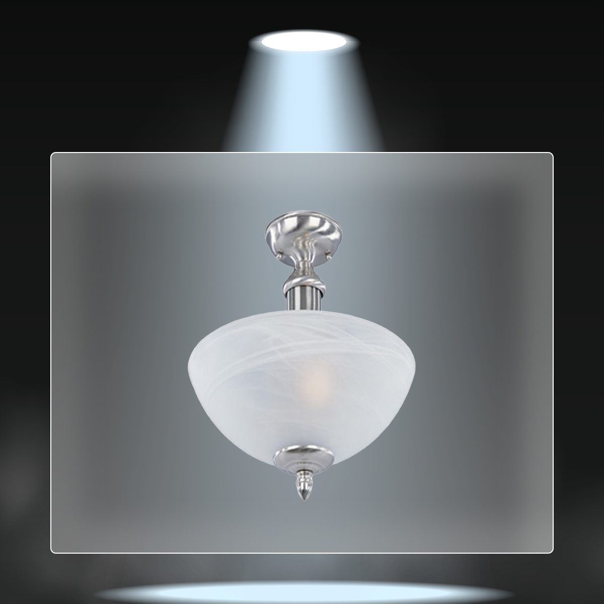 Sarah Series, Ceiling Lighting Pendant x 2 Bulbs – Ceiling Lamp Timeless elegance and functionality come together in this pendant light from the Sarah series, perfect for adding a sophisticated touch to dining rooms, hallways, or living areas. Its compact design with alabaster glass shade softens the light, creating a warm and inviting atmosphere. Measuring 12-5/8″ wide by 12-1/2″ high, this lamp is designed to work with two E26 bulbs of up to 100W each (not included), providing efficient and enveloping illumination. The satin nickel finish enhances its modern look while maintaining the warmth of classic style, making it an ideal piece for elegant and functional homes.