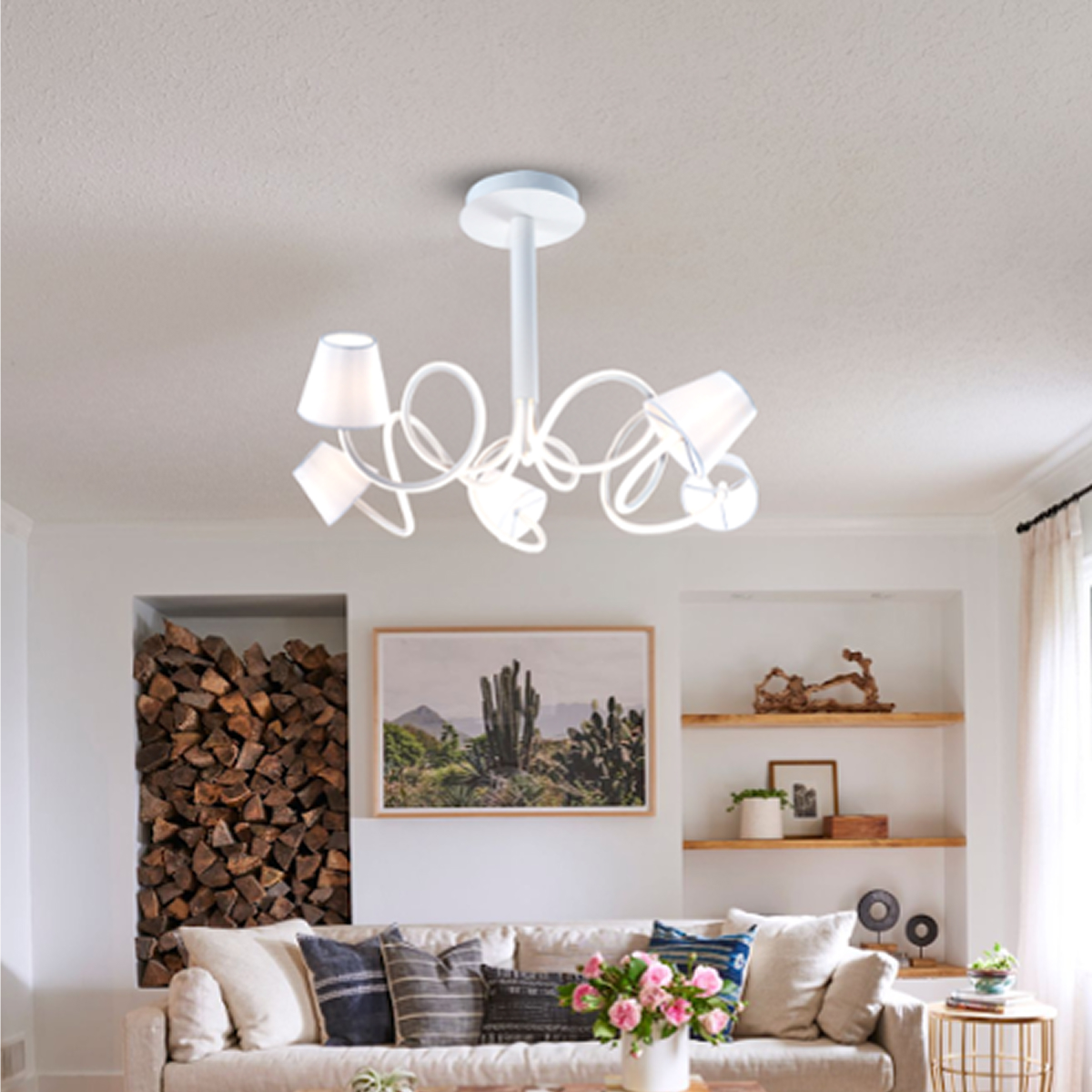 SOPHIA Series, LED Pendant Lamp – White (760×520 mm).With a taller profile for more impact, this Sophia version features elegant curved LED arms and classic white tulip shades. The 48W dimmable LED light and CCT control (2700K–5000K, 5 levels) create versatile lighting options. Ideal for dining rooms or entryways seeking style with efficiency.