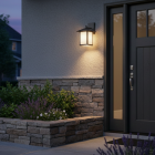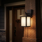 Williams Outdoor Lantern.Minimalist and contemporary, the Williams lantern is perfect for modern façades. Made of matte black aluminum with white frosted glass panels, it delivers soft, glare-free light. Measuring 9″ high x 4-1/2″ wide x 6-1/2″ deep and compatible with E26 bulbs of up to 100W (not included), this fixture is an elegant choice for lighting walkways, patios, or entrances with a refined, modern air.