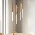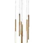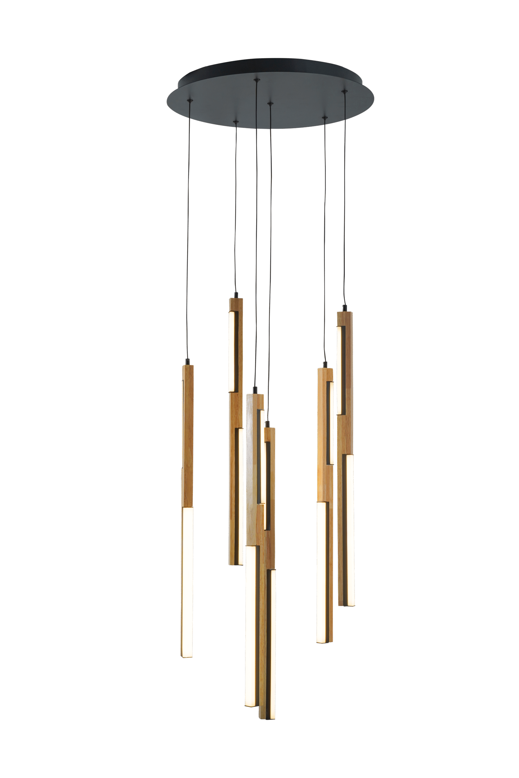 This striking vertical pendant features gold cylindrical forms suspended above a black base, adding depth and contrast. With 48W LED output and 5-step dimmable color temperature (2700K–5000K), it provides luxurious and controlled lighting. Perfect for entrances, dining rooms, or refined interiors seeking modern elegance.