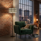 F01 (Floor) – Floor Lamp “Zenda”. The Zenda Alta floor lamp extends the elegance of its table version with a tall structure, ideal for lighting living rooms, reading corners, or next to a sofa. The square white shade softens the light, creating a cozy ambiance. With a matte black finish, it’s a modern and functional choice for sophisticated interiors. Compatible with E26 bulb, includes UL-certified plug cable and on/off switch.